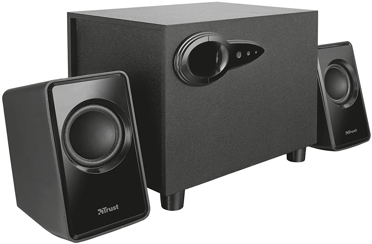 Trust Avora 2,1 son un conjunto de altavoces compactos con subwoofer de 18W y alimentación por USB 2.1 con subwoofer de madera, para ordenadores de sobremesa y portátiles
